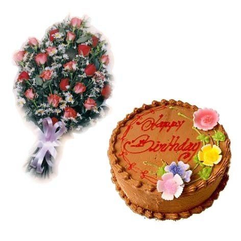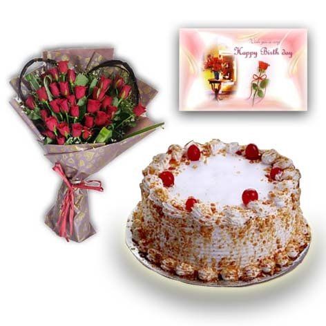1 kg Cake , Bouquet 24 flowers &card Combo