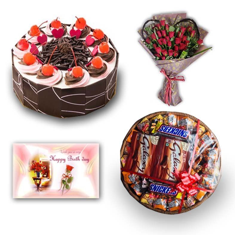 1 kg Cake , Bouquet 12 flowers, 1 kg chocoate &card Combo (T&C applied)