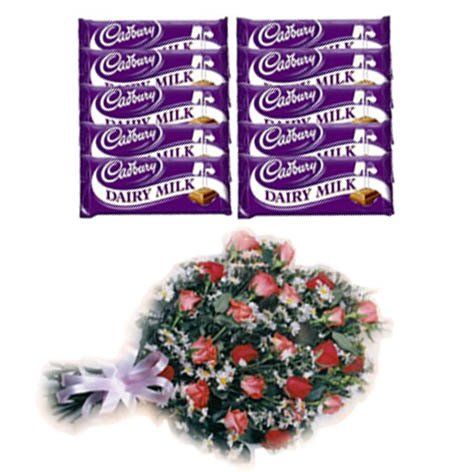 12 Flowers Bouquet + 700 Gm Dairy milk Bars & Greeting Card