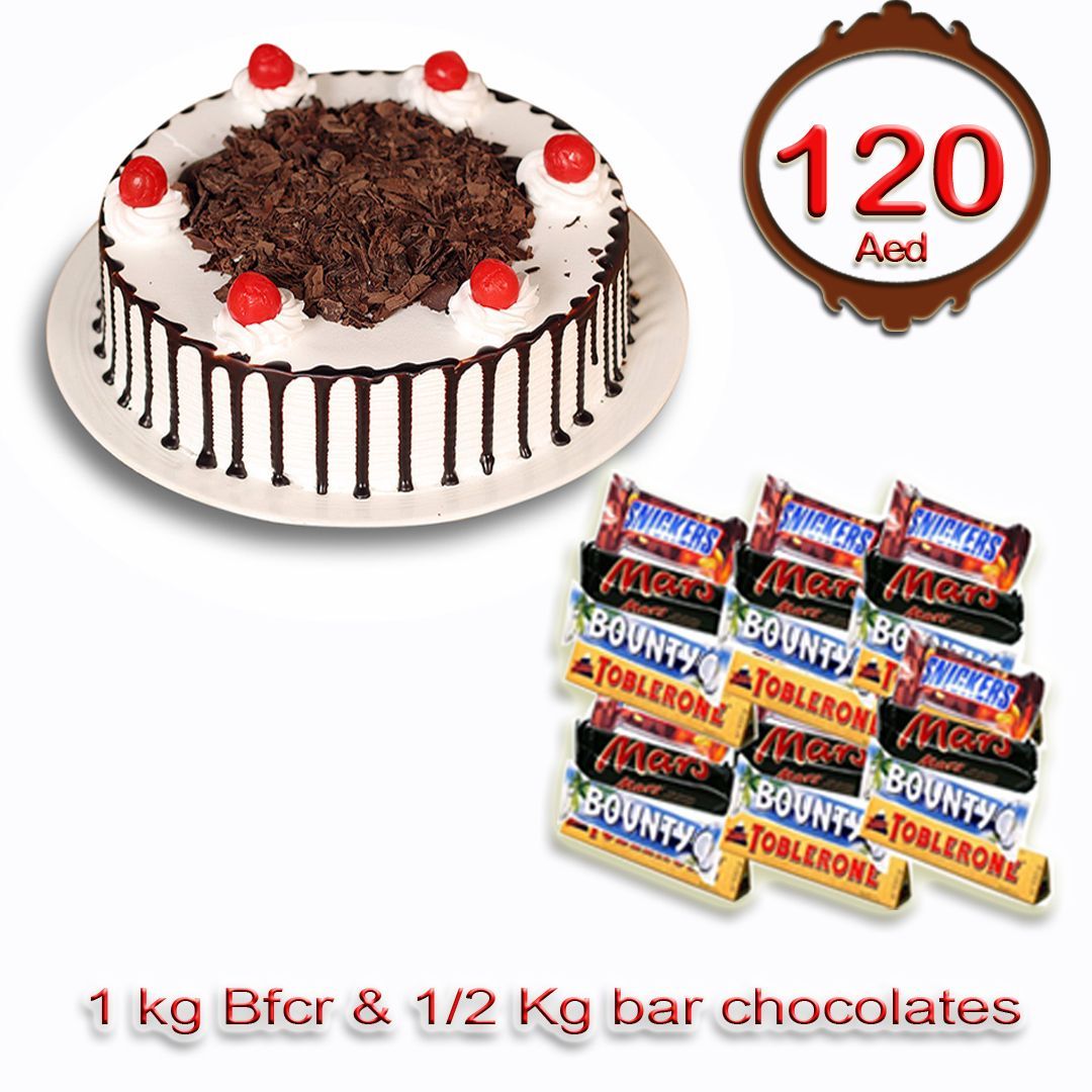 1 Kg black forest cake + 500 gm bar chocolates -AED 120
